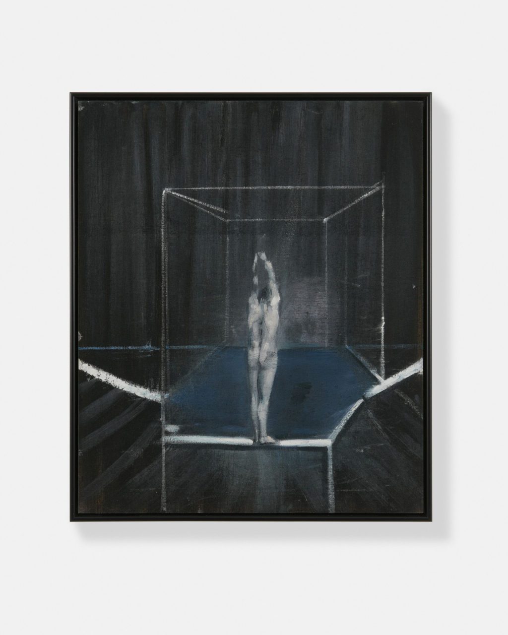 ‘Study of a Nude’, a painting of an anonymous nude figure standing within a transparent cubic structure, was produced in 1953 by Francis Bacon and was subsequently transformed into a series of giclée prints mounted on aluminium in 2015.